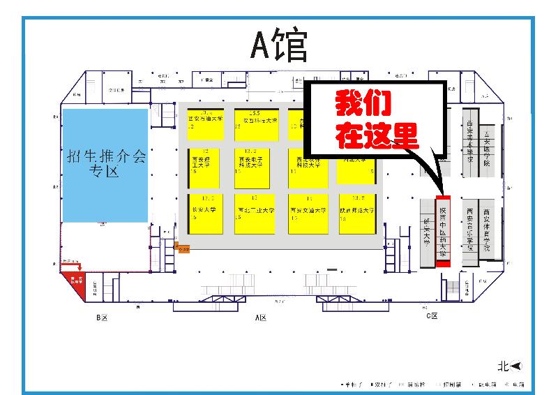 陕西中医药大学展位在A馆C区,教博会的展示服务项目包括以下四个区域。